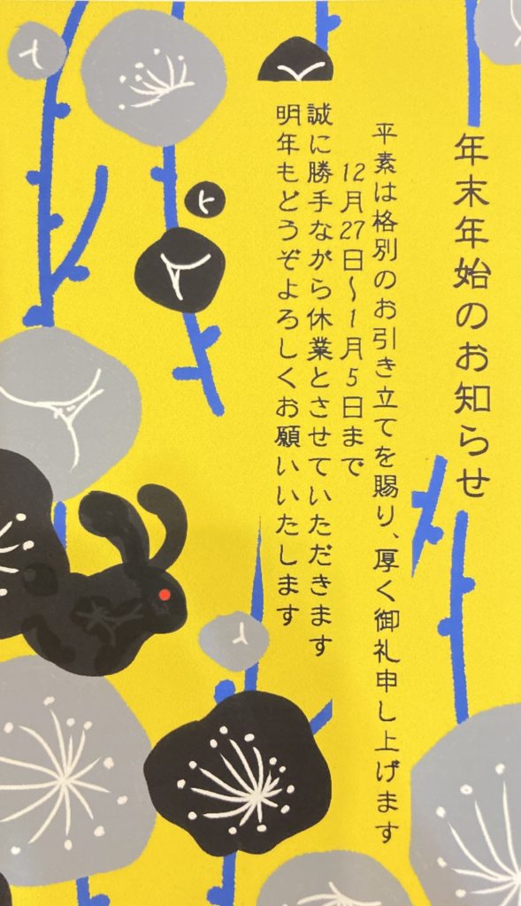 年末年始のお知らせ お知らせ 2022.12.262023.01.31 皆さま良いお年をお迎えくださいませ😊来年はさらにたくさん制作できるよう頑張ります! これから益々寒さ厳しくなります。お身体ご自愛くださいね。